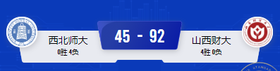 2026年3月26日 ,山西财经大学男子篮球队对阵西北师大男子篮球队,最终以92-45的比分战胜对手。球队以4胜0负的不败战绩夺得小组第一,跻身全国16强。