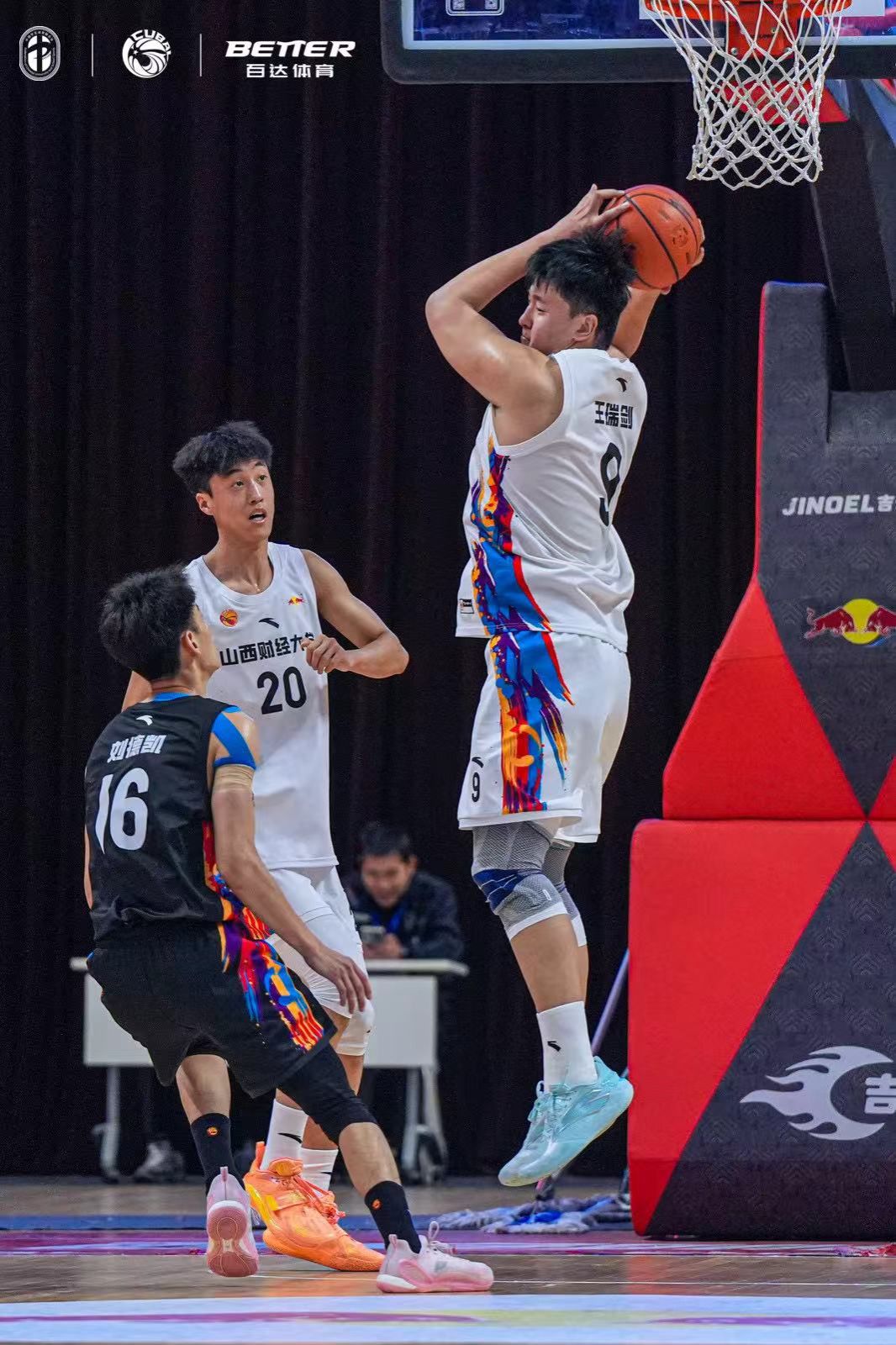 比赛伊始,双方就将防守强度拉满,身体对抗频繁升级。中北大学凭借更具侵略性的突破和外线投射率先打开局面,持球人连续突破内线造成杀伤,外线也抓住机会命中三分,迅速建立起进攻节奏。而我校男篮则略显慢热,进攻端多次出手未能转化为得分,防守端也未能及时限制住对手的传导球,单节仅得到14分。首节战罢,我校男篮以14-15暂时落后1分,开局面临不小的压力。