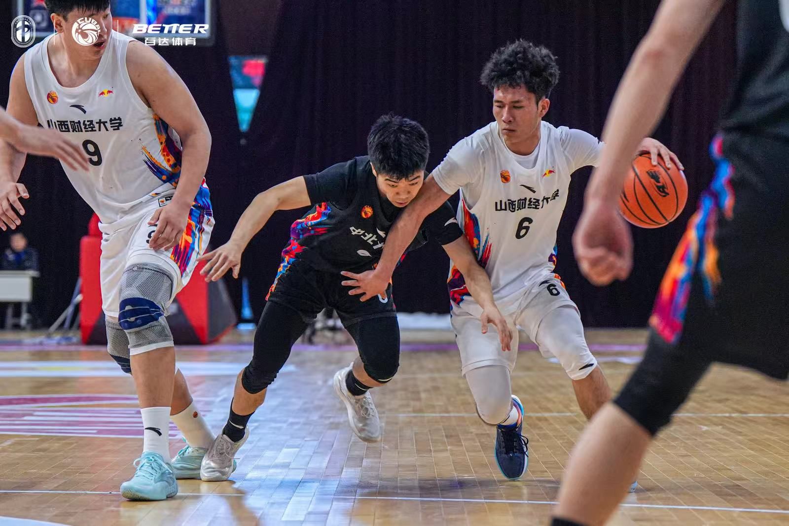 进入第二节,教练团队及时暂停调整战术,要求队员们加强无球跑动,同时在防守端采取换防策略,对中北大学的外线持球人进行贴身紧逼,切断对手的传球路线。调整立竿见影,队员们逐渐找回状态:防守端的压迫性让中北大学失误增多,多次出现传球被断、进攻超时的情况;进攻端则抓住对手失误的机会,打出高效快攻,同时外线三分接连命中,单节轰下22分,而对手仅得到19分。次节结束,我校男篮以36-34的比分完成反超,带着2分的微弱优势进入下半场。